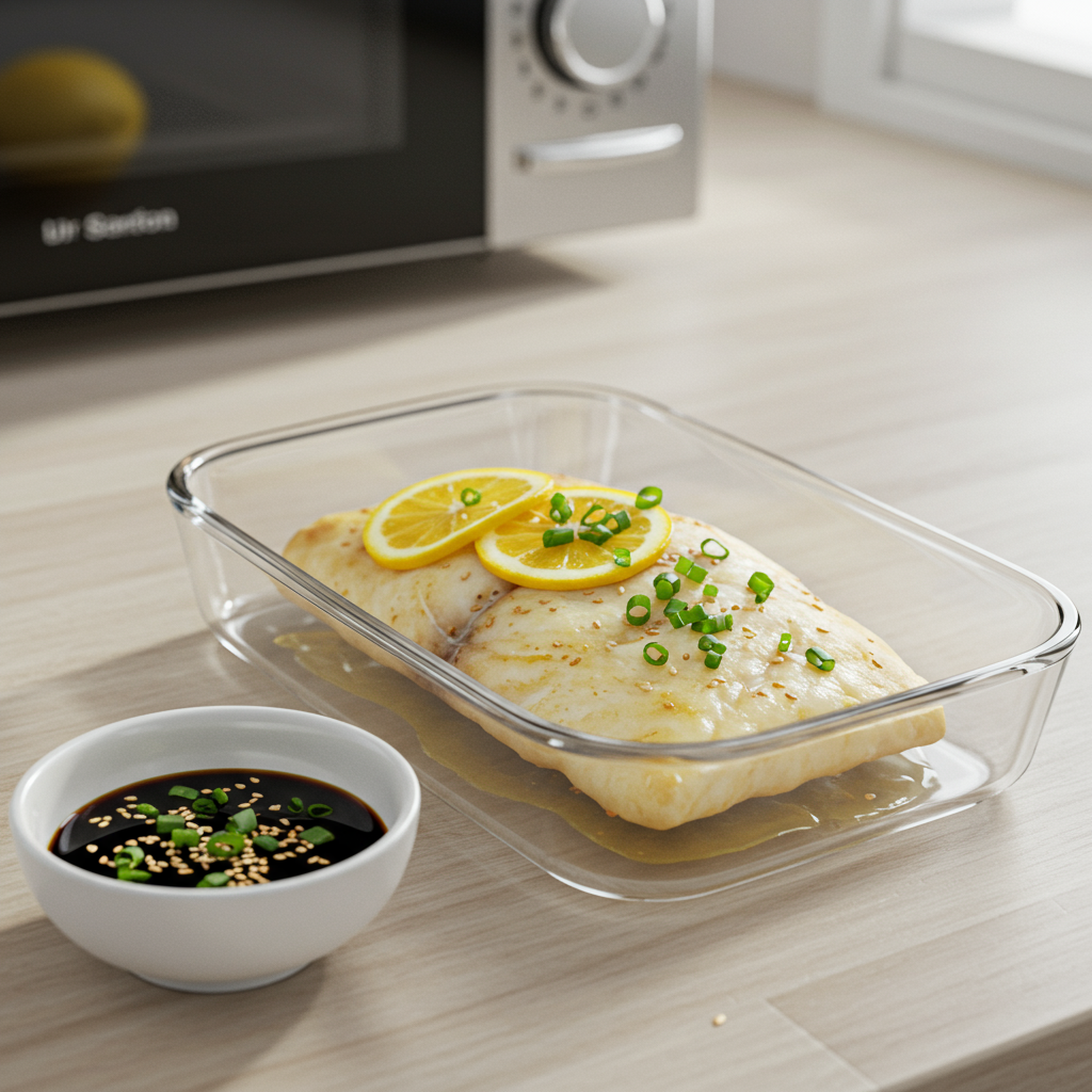 - 전자레인지로 찐 생선은 담백한 맛이 강해요. 간장, 참기름, 다진 파, 깨소금을 섞은 간장 양념장을 곁들이면 좋아요.
